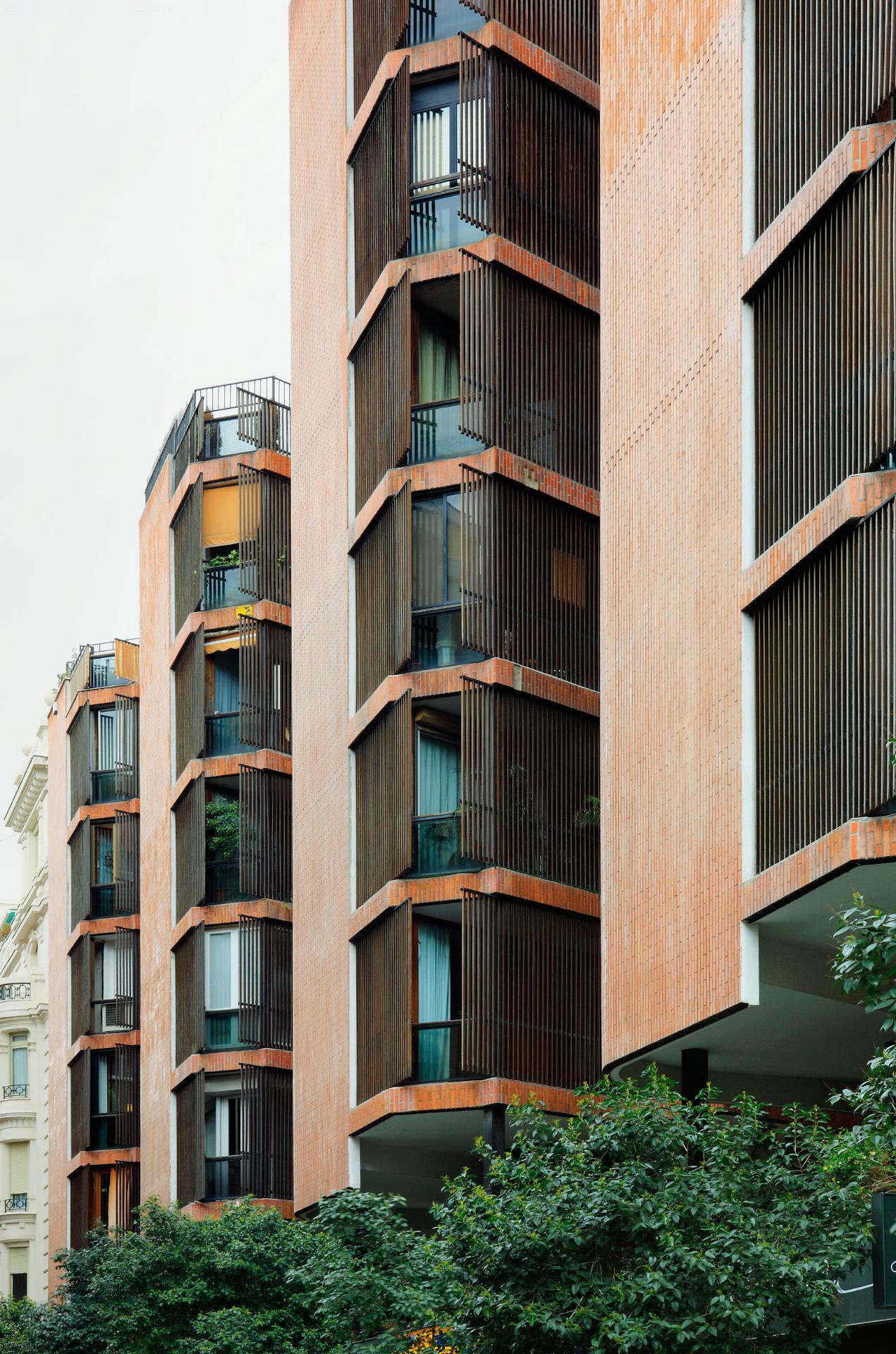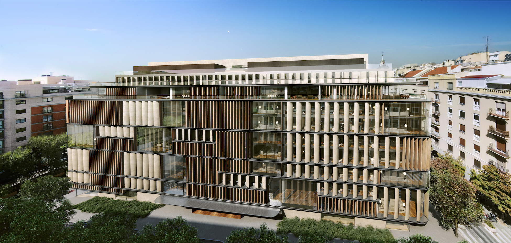 - Claudio Coello, 121 (44 dwellings 2020) by Arenas Basabe & Palacios. The assignment consisted of the design, execution and construction of a residential building at 121 Claudio Coello street, in the heart of the Salamanca district. Its exceptional location represents an opportunity and at the same time a challenge due to its visible presence from the Juan Bravo bridge on the Castellana. Aware of the importance of its location, the project presents a dual character through the contrast in its materiality. Facing Claudio Coello Street, the building responds to the classic organisation of the neighbourhood, with tripartite facades with a plinth, body and crown. This more urban view is shown strictly, without ornament, modulated by cutting precast white concrete panels.