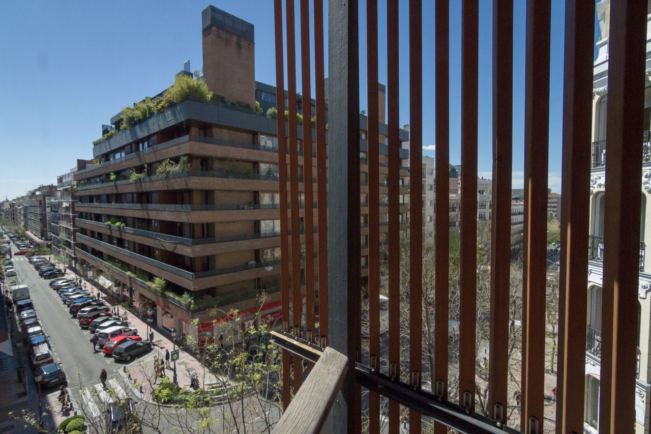 - Lagasca 99 (44 dwellings 2026-17) is an elegant and exclusive 44 dwelling private housing development building in the middle of the golden mile of the Salamanca District. A luxurious, still modern and elegant, is designed by a prestigious architect from Madrid, Rafael de la Hoz. The most expensive rental apartment in Madrid which costs around 16,000€ per month and is owned by a couple from Venezuela whose construction company has participated in large public works for the Government of their country. They live in Miami and it is their real estate agent who receives those interested in the street, at the doors of the 650-square-meter lobby, the largest in the capital of Spain. The starting price per flat was between 3 and 17 million. On the roof terrace, we find an L-shaped outdoor pool twenty meters long. Under the lobby there is another pool, gym, sauna and Turkish bath, 156 parking spaces and storage rooms.