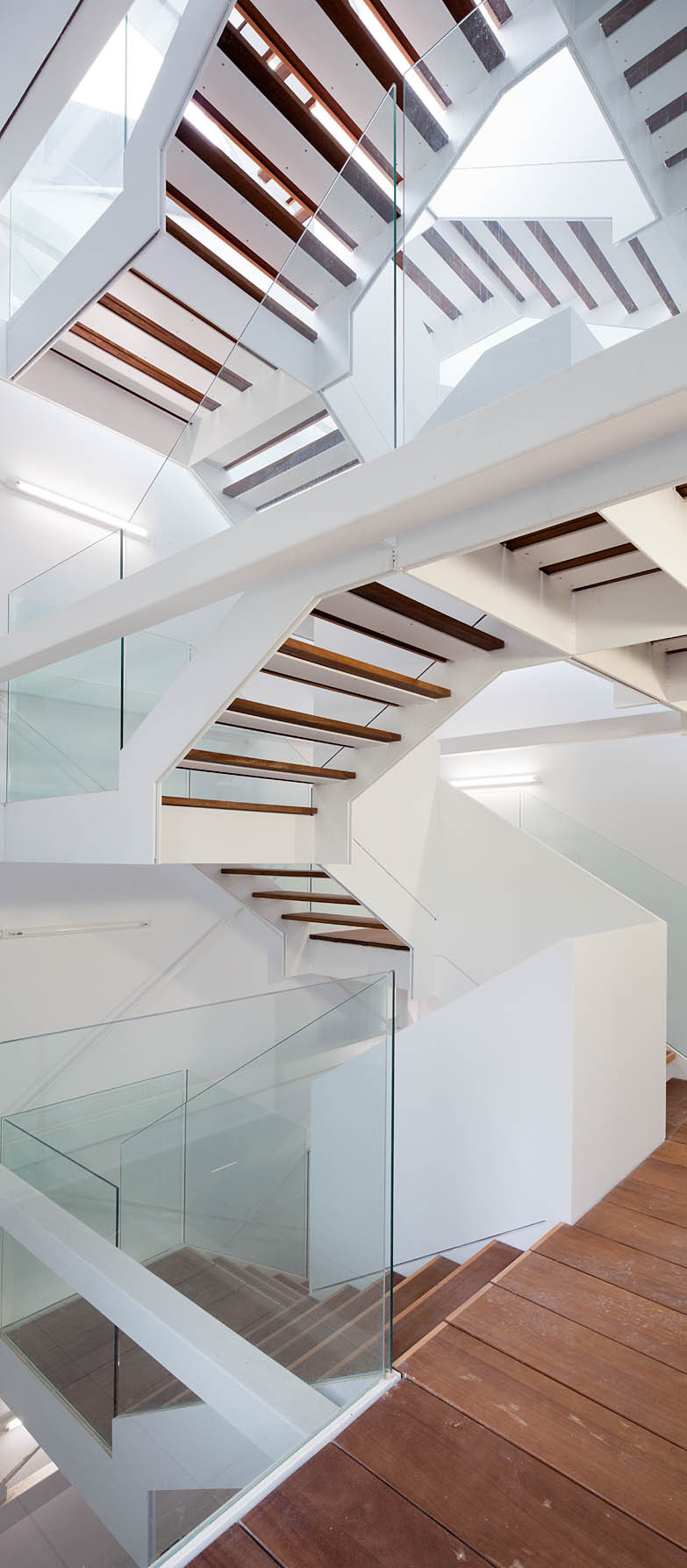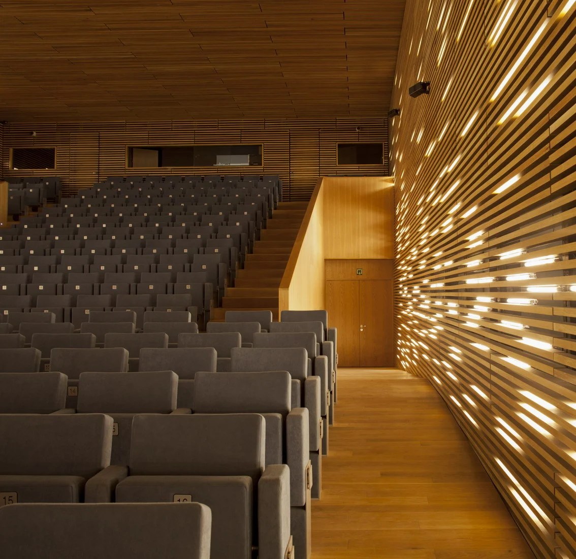 Attention to the detailed and beautiful designs that perfectly integrates the pre-existing brick building with the new intervention, a beautiful underground dialog of dark and light with new materials such as steel glass and warm wood interiors in the case of theatrical spaces.