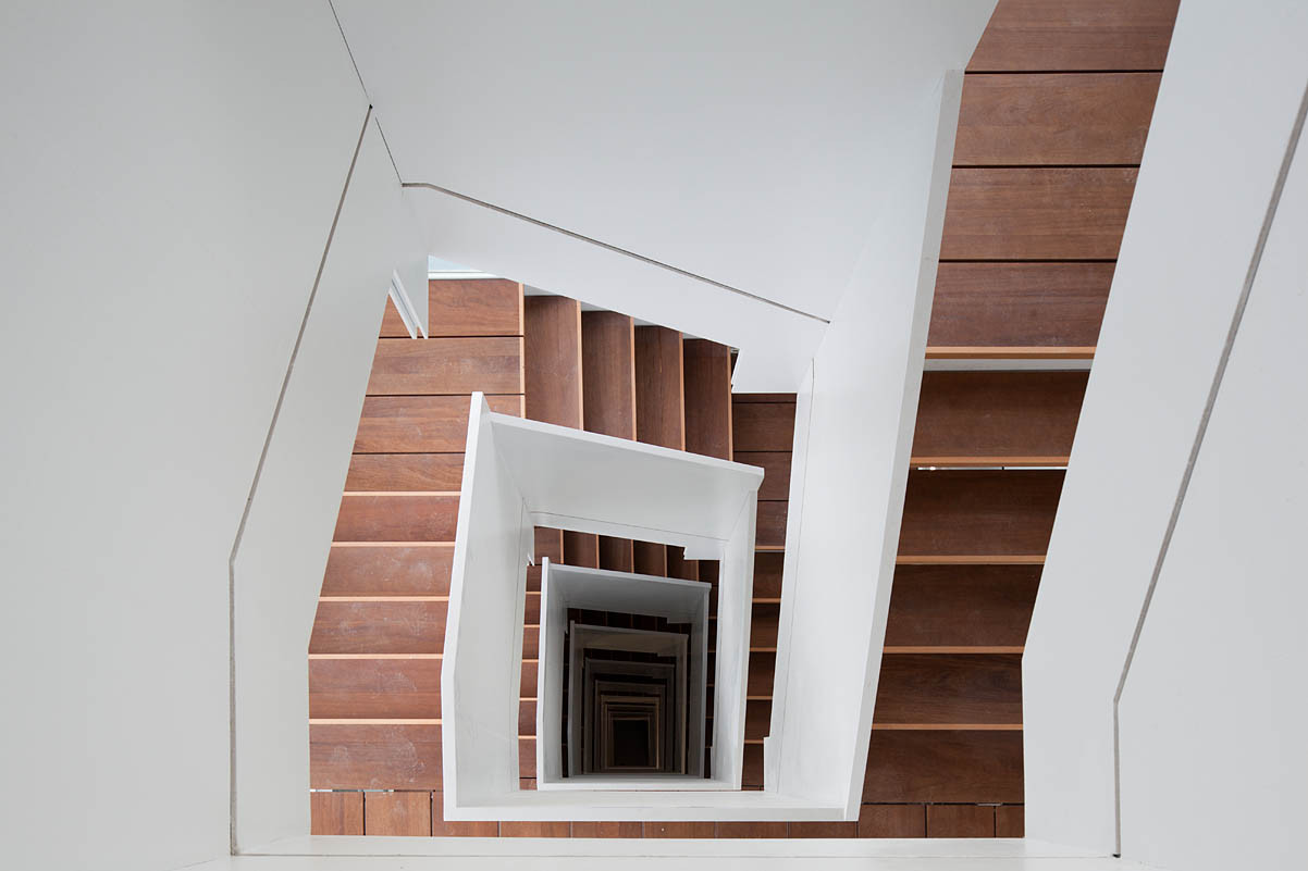 Below ground, the building is made up of four parking floors with natural ventilation and lighting through four enormous circular patios designed so that, just like light, the vegetation enters and grows freely.