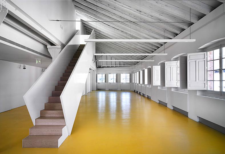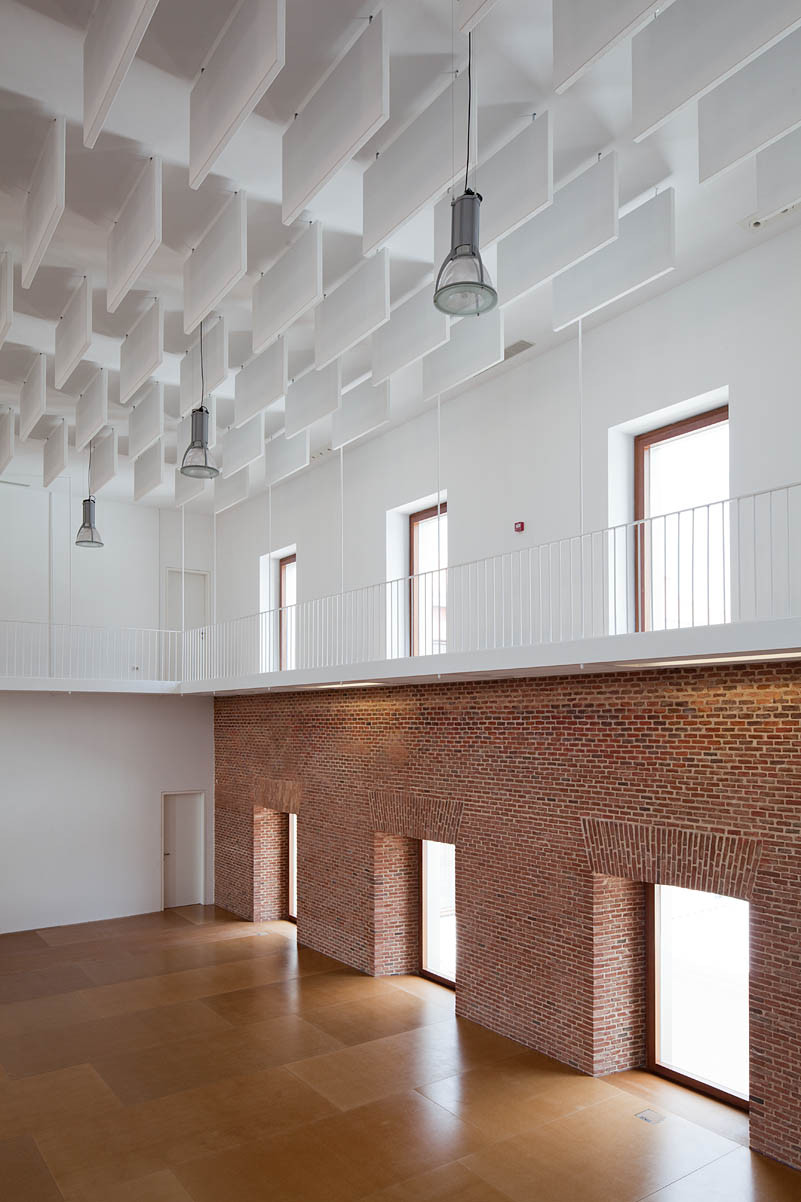 The first images of its naked interior were open naves of brick arches on granite pillars and at other levels, wrought columns and riveted beams. Clean and austere spaces covered with solid brick structures. The powerful space called for an obvious solution: to maintain the skeleton, to remove additions and to concentrate the new interventions. The aim was to achieve a big neutral container where new timeless objects and specific elements could be situated.
